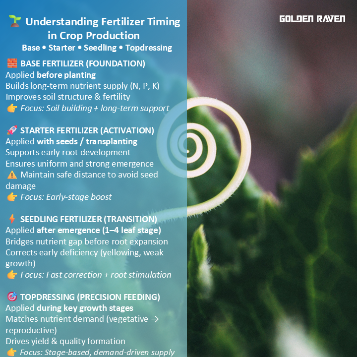 Once the application timing, functional focus, and supporting practices of base fertilizer, starter fertilizer, seedling fertilizer, and topdressing are clearly understood, many practical fertilization challenges in the field can be easily resolved.
